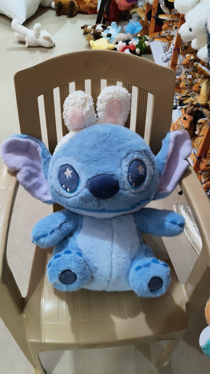 Stitch plush wearing bunny ears from Disney collection.