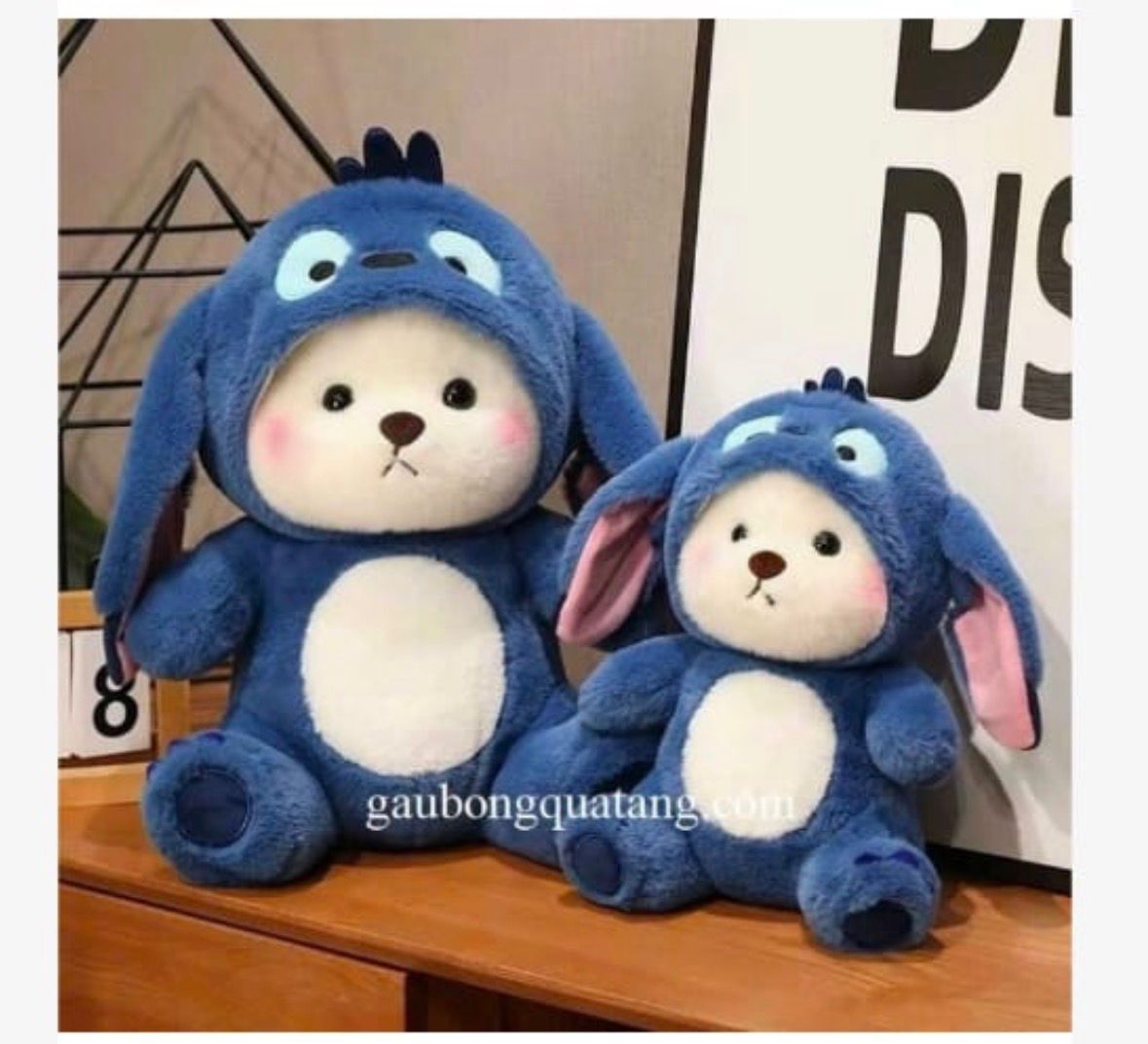 Teddy bear plush wearing blue hoodie. Available in big and small sizes.